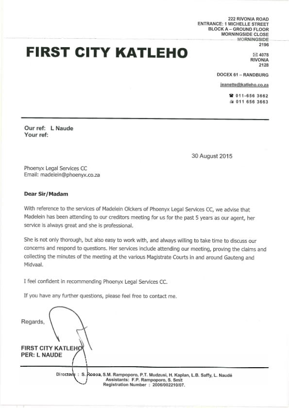 Testimonials Letter of Recommendation – Heather Pretorius Inc Reference Letter – CK Trust Letter of Recommendation – S Brown Attorneys Incorporated Letter of Recommendation – Marius Swart Attorneys Get in touch Name Email Address Phone Message Send